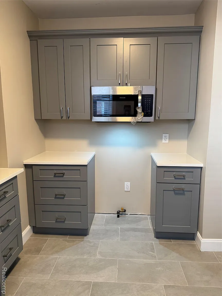 Modern kitchens equipped with a refrigerator, stove, and microwave