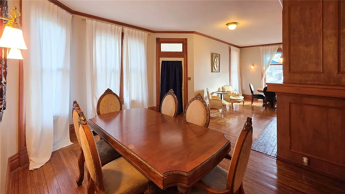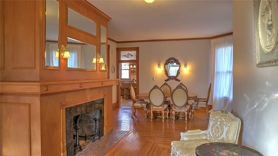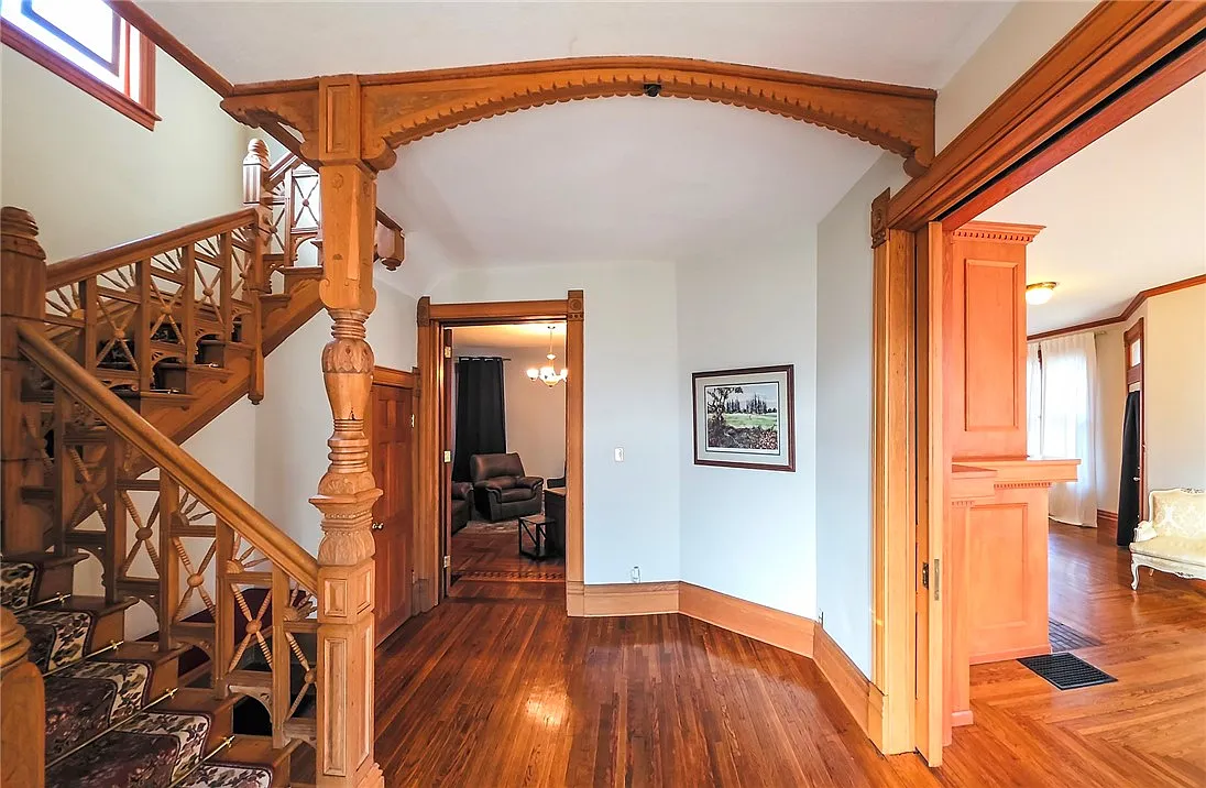 The main floor is where the home’s Victorian character truly shines. Intricate woodwork, crown molding, and detailed trim speak to the craftsmanship of a bygone era. Hardwood floors span the main level, providing warmth and continuity while highlighting the home’s historic integrity.
