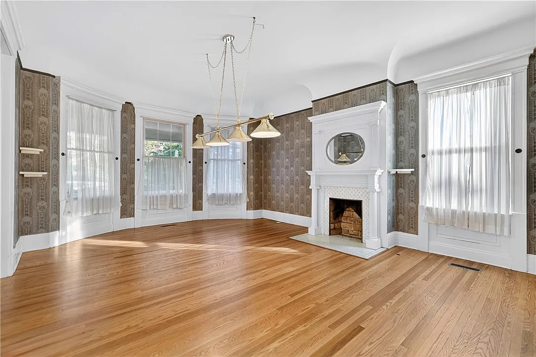 Decorative fireplaces anchor several rooms, adding both visual interest and a sense of historic charm, even as the home has been thoughtfully maintained to support modern comfort.