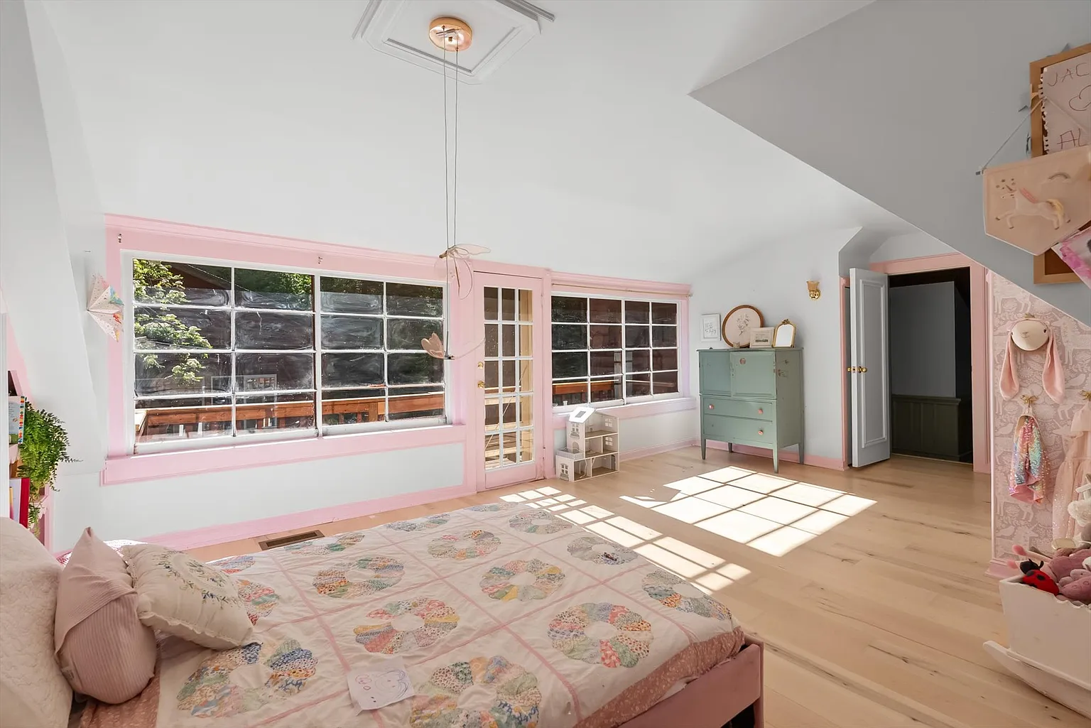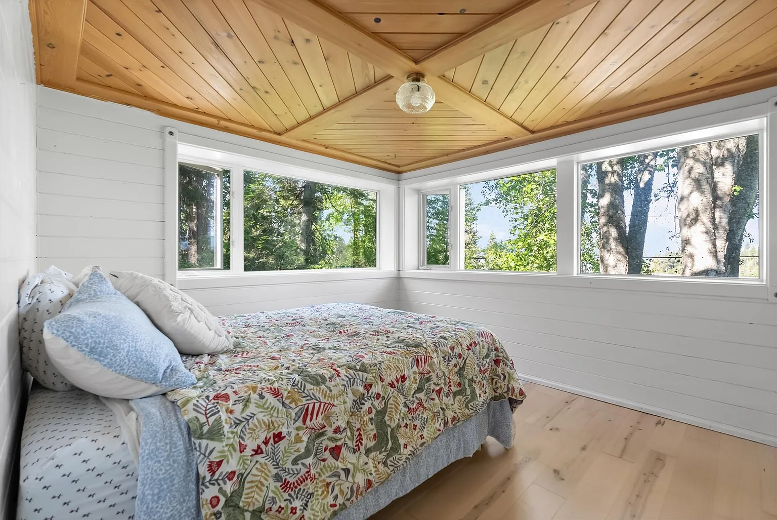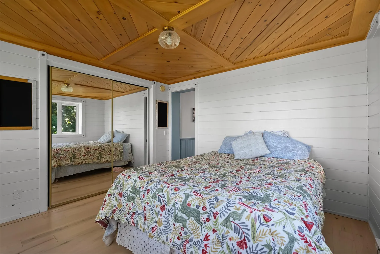 The upstairs bathroom serves both bedrooms and offers a sense of privacy, making the second floor ideal for children, extended family, or visiting friends. Each room maintains the timeless atmosphere of the home—wood textures, cozy lines, and a sense of being tucked into nature—while offering the comfort needed for modern living.