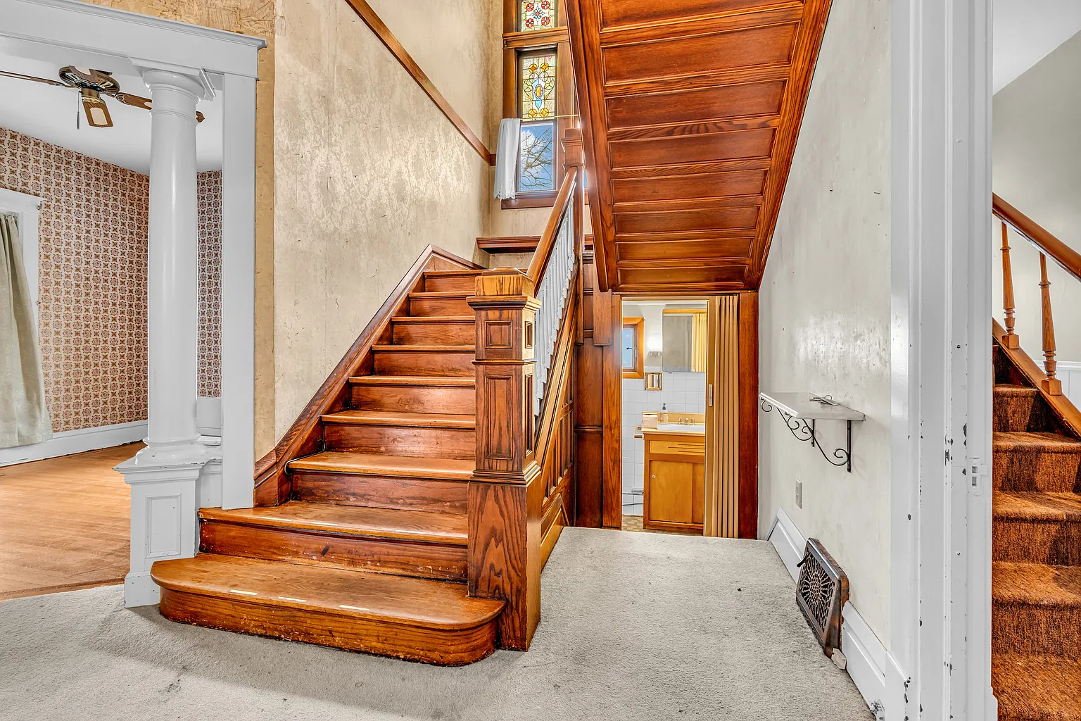 Step inside, and the home’s historic soul becomes immediately evident. One of the most striking features is the original staircase, a stunning focal point that greets you upon entry. The craftsmanship of the banister and wood detailing speaks to the era in which the home was built—when architecture was both functional and decorative.