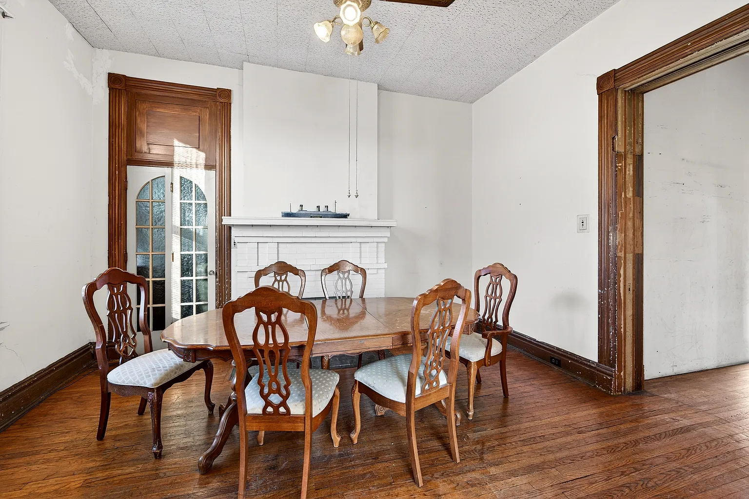 One of the most striking features is the presence of original hardwood pocket doors, stately and elegant, allowing for graceful transitions between formal spaces. These doors are more than functional—they are architectural statements, reflecting a level of detail and artistry rarely preserved in homes of this scale.