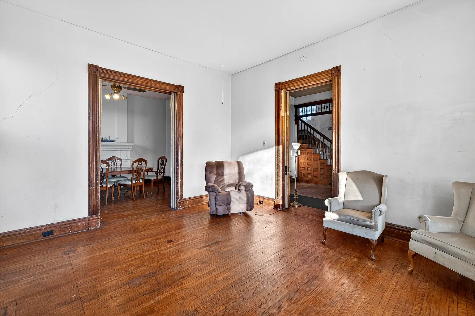 Throughout the residence, original hardwood interior doors remain intact, each one a tangible reminder of the craftsmanship that defined the late 1800s. Their weight, design, and patina tell a story of time and quality, offering restoration enthusiasts a rare opportunity to highlight authentic elements rather than recreate them.