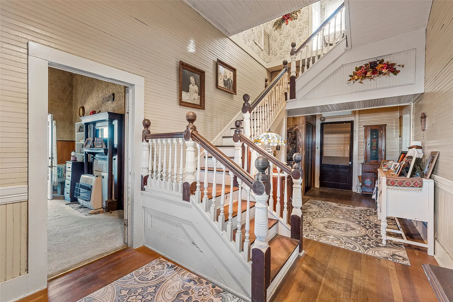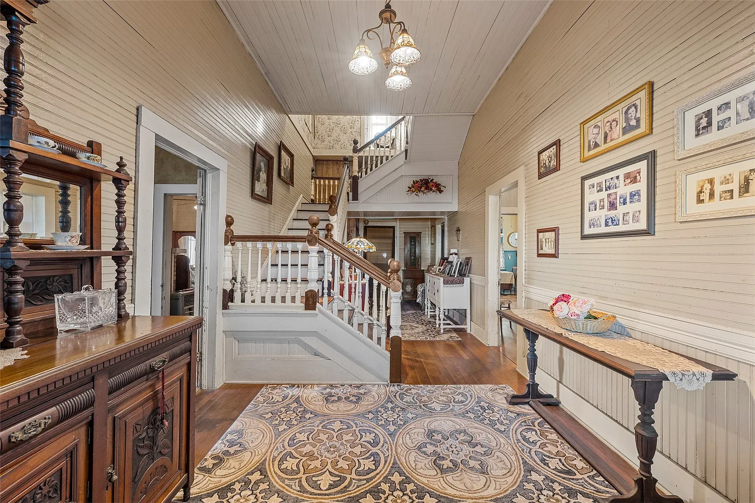 One of the most striking interior features is the inviting staircase, a focal point that reflects the attention to detail and skilled workmanship of the early 1900s. Unlike today’s mass-produced designs, this staircase was built to last—and it has done just that for more than a century.