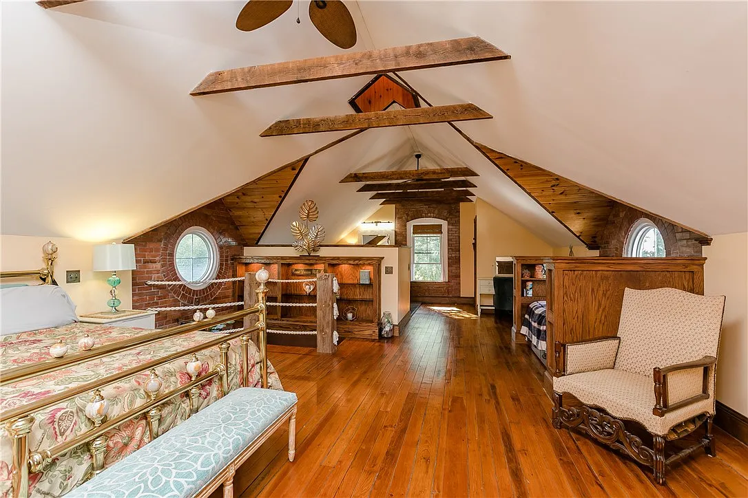 Nearly every room in the home captures stunning lake vistas, creating a constant connection to the natural beauty just beyond the windows. One of the most extraordinary features is direct access to the lighthouse tower itself, a privilege rarely offered in residential properties.