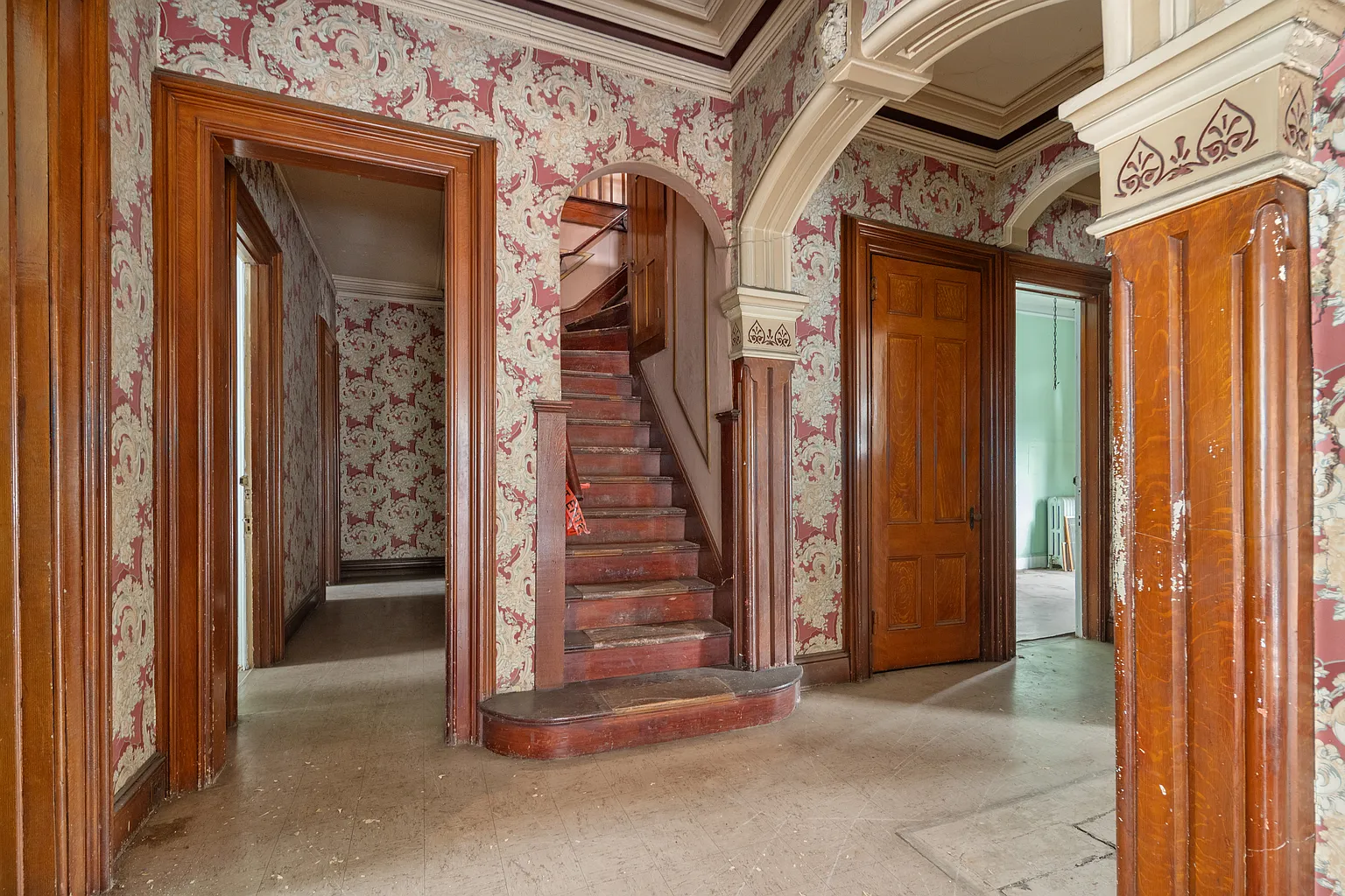 Built during the Victorian era, the home reflects a time when architecture emphasized detail, craftsmanship, and elegance. Though it now requires a full restoration, the bones of the building still carry the charm and grandeur typical of 19th-century construction.
