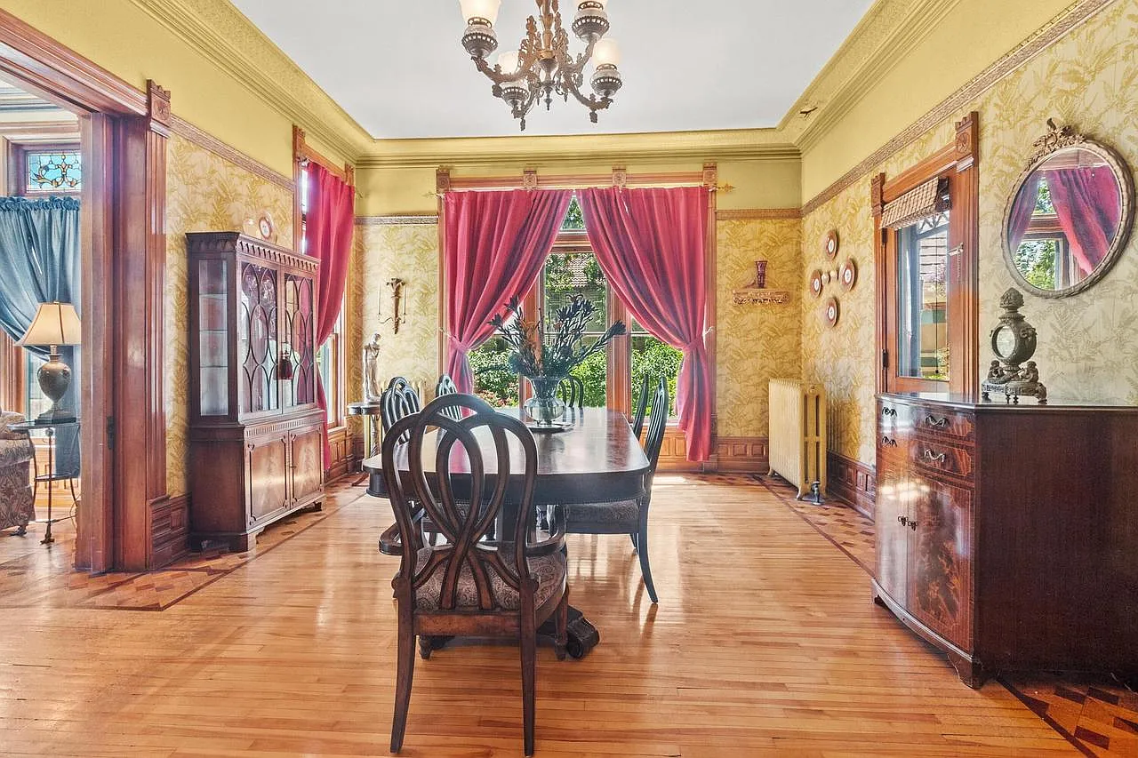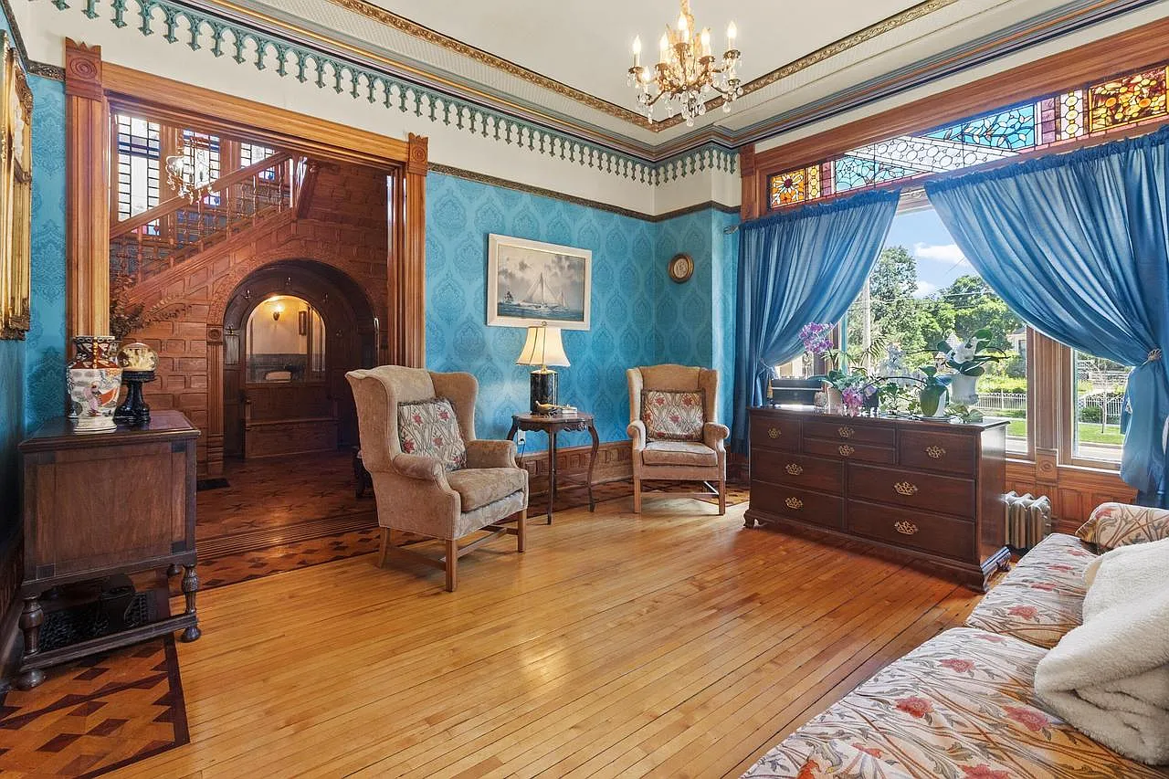 This home is a true Queen Anne masterpiece, a style celebrated for its asymmetry, decorative detailing, and expressive use of materials. From the moment you approach the property, the elegance is unmistakable. The façade tells a story of another era, where beauty and individuality were paramount, and no detail was overlooked.