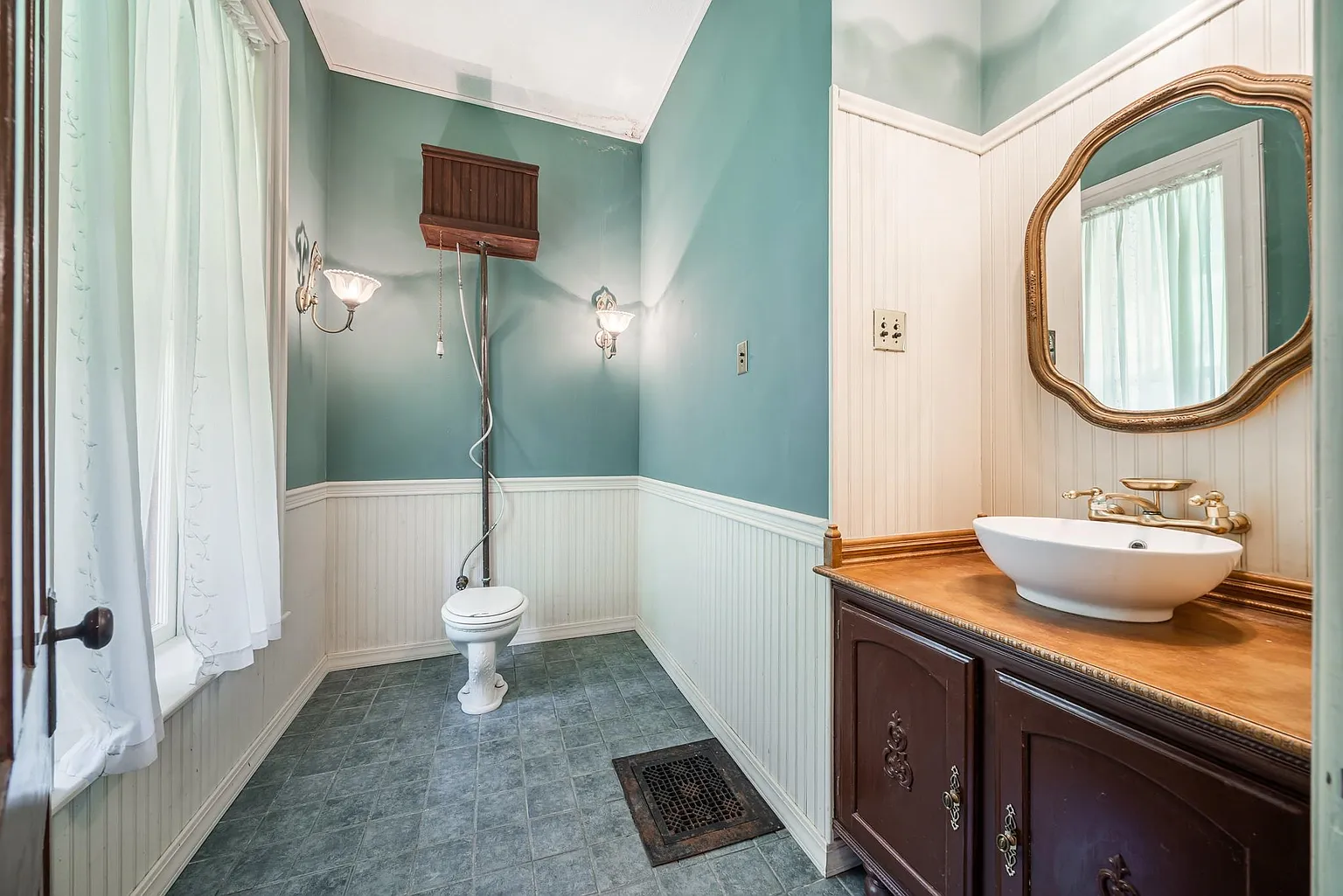 With three bathrooms—including a convenient half bath—the home provides practicality for families and guests alike. The existing bathrooms meet everyday needs, while also offering opportunities for updates that align with modern preferences. Whether you envision spa-inspired finishes or period-appropriate designs, the bathrooms offer flexibility for customization.