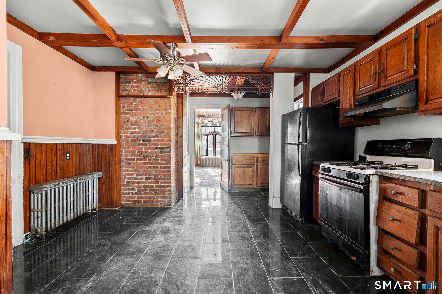 The main level continues to impress with a thoughtfully designed formal dining room, ideal for hosting holiday meals and special occasions. The eat-in kitchen provides ample space for everyday dining and meal preparation, offering functionality while maintaining the home’s vintage charm.