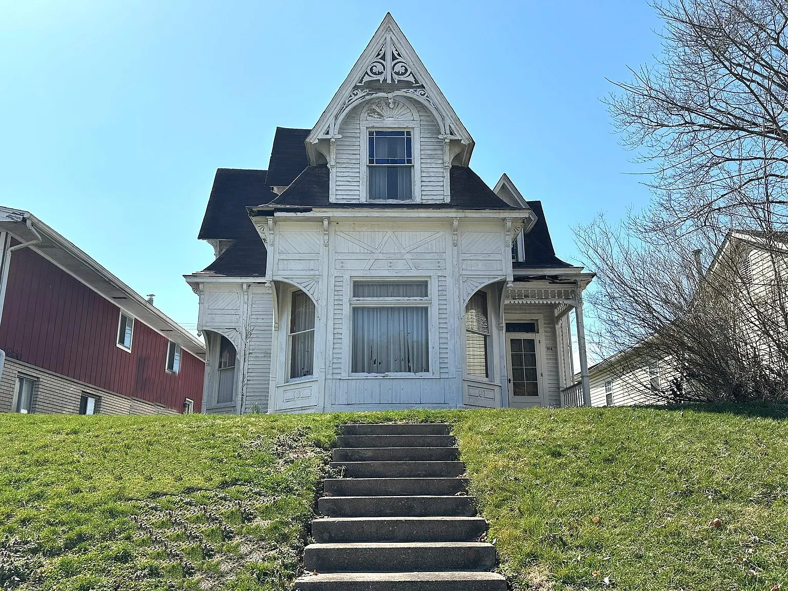 Eastlake homes are prized for their ornate woodwork, asymmetry, and emphasis on handcrafted details, and this Ironton residence exemplifies those traits beautifully. From the exterior, the home immediately captures attention with its wood-frame construction, seven distinctive dormers, and a roofline that adds both visual interest and interior character.