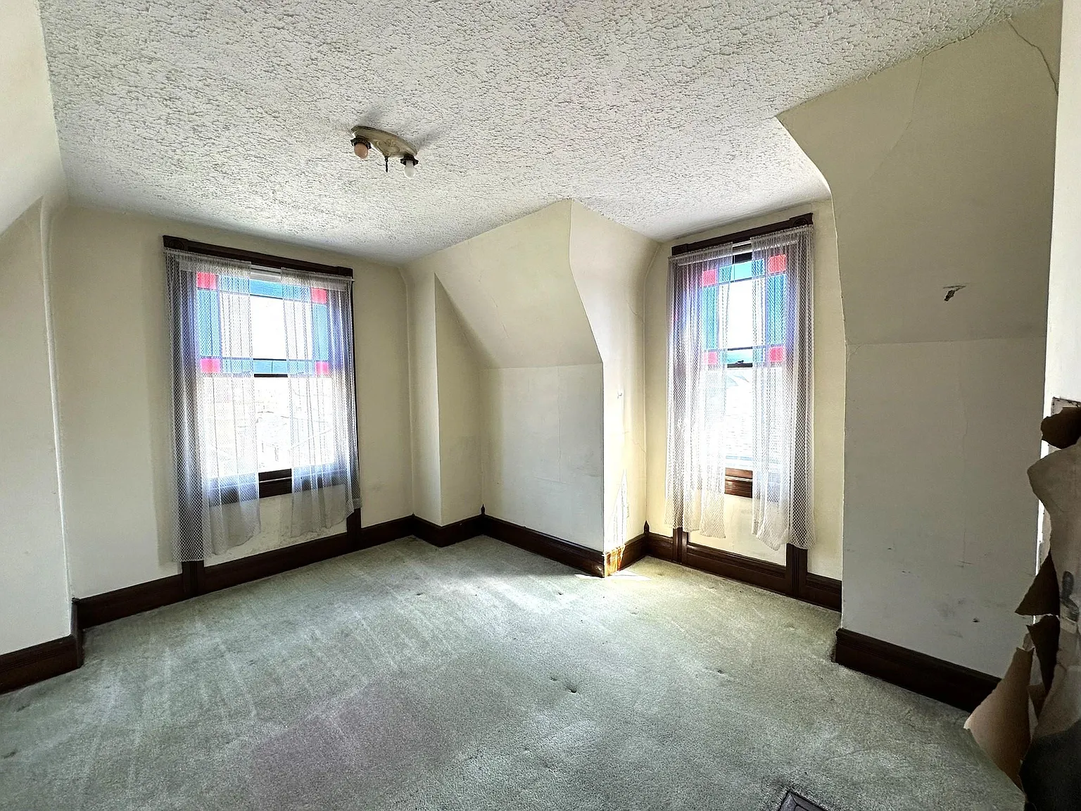 One of the most impressive exterior features is the collection of original windows, each adorned with ornate hoodmold treatments and decorative pendants. These details, rarely found intact today, showcase the level of craftsmanship that defined the era and make the home a standout among historic properties.