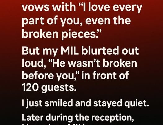 I ended my wedding vows with, “I love every part of you, even the pieces shaped by life.” Before the guests could applaud, my mother-in-law suddenly blurted, “He wasn’t struggling before you,” turning the joyful moment into an awkward silence. I chose to keep smiling, reminding myself that her words reflected her worry, not the truth. My husband gave me a reassuring glance, grounding me in the love we had just promised each other. I decided then that no comment would take away the meaning of our day.