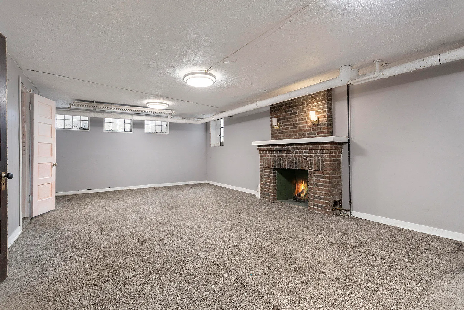 The home’s basement further expands its livable square footage. It includes a finished flex space with a fireplace, creating a warm and inviting area that could serve as a family room, media space, game room, or hobby area. The fireplace adds character and comfort, making this lower-level space feel like a true extension of the home rather than an afterthought.
