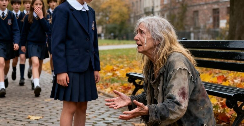 Every afternoon after school, fourteen-year-old Clara Carter walked home with her two best friends, Mia Thompson and Jordan Ellis, through the small suburban neighborhood of Brookridge, Ohio. Their route always led them past Maple Park, where a homeless woman, wrapped in mismatched layers of jackets, sat on the corner bench. Her tangled brown hair and weary eyes made her look older than she truly was.