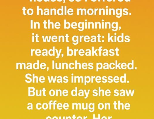 At first, I didn’t understand. It was just a mug, I thought. I had made breakfast, packed lunches, dressed the kids — didn’t that count for something? But as I looked at her, I realized it wasn’t about the mug at all. It was about the weight she had been carrying for years — a weight I had never truly noticed.