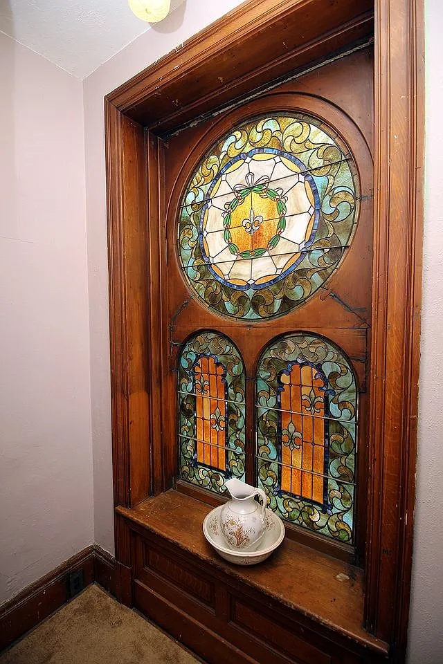 Natural light filters through stunning stained glass windows, casting colorful patterns that shift throughout the day. Each room feels infused with character, blending artistry with everyday living.
