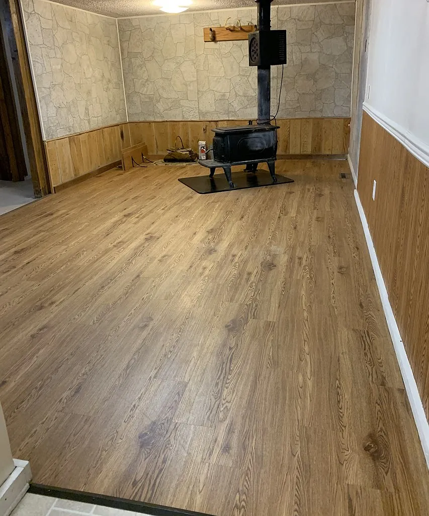 The home includes both a living room and a cozy family room, the latter enhanced by a wood stove that provides a reliable heat source and adds to the rustic atmosphere. Combined with central heating and air conditioning, the home remains comfortable year-round no matter what the weather brings.
