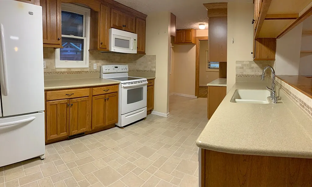 The heart of the home is the updated kitchen, which boasts solid wood cabinetry that brings warmth and durability to the space. Solid surface countertops provide an easy-to-maintain and stylish workspace for cooking, baking, and entertaining. All kitchen appliances are included, making the home move-in ready for its next owners.