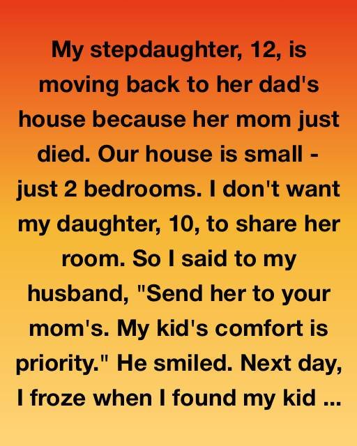 My stepdaughter, 12, is moving back to her dad’s house because her mom just died. Our house is small—just 2 bedrooms. I don’t want my daughter, 10, to share her room. So I said to my husband, “Send her to your mom’s. My kid’s comfort is priority.” He smiled.