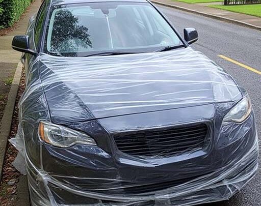 My car was completely wrapped in clear packing tape. From bumper to bumper, roof to tires, like some deranged art installation. There must’ve been dozens of rolls used — the tape crisscrossed every inch, shimmering in the sunlight.