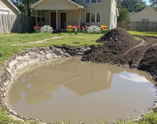 As I pulled into my driveway, I noticed something was wrong. The usual sparkle of water that greeted me was gone. In its place was… dirt. My heart sank as I jumped out of the car.