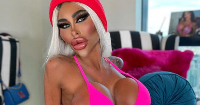 At 5 foot 7 and only 100 pounds, including all her fillers and implants, the self-proclaimed “Australia’s Limited Edition Barbie Doll,” has had five breast augmentations, six nose jobs, eyes recolored to a “vibrant green,” cheek and butt implants, and endless rounds of Botox and filler.