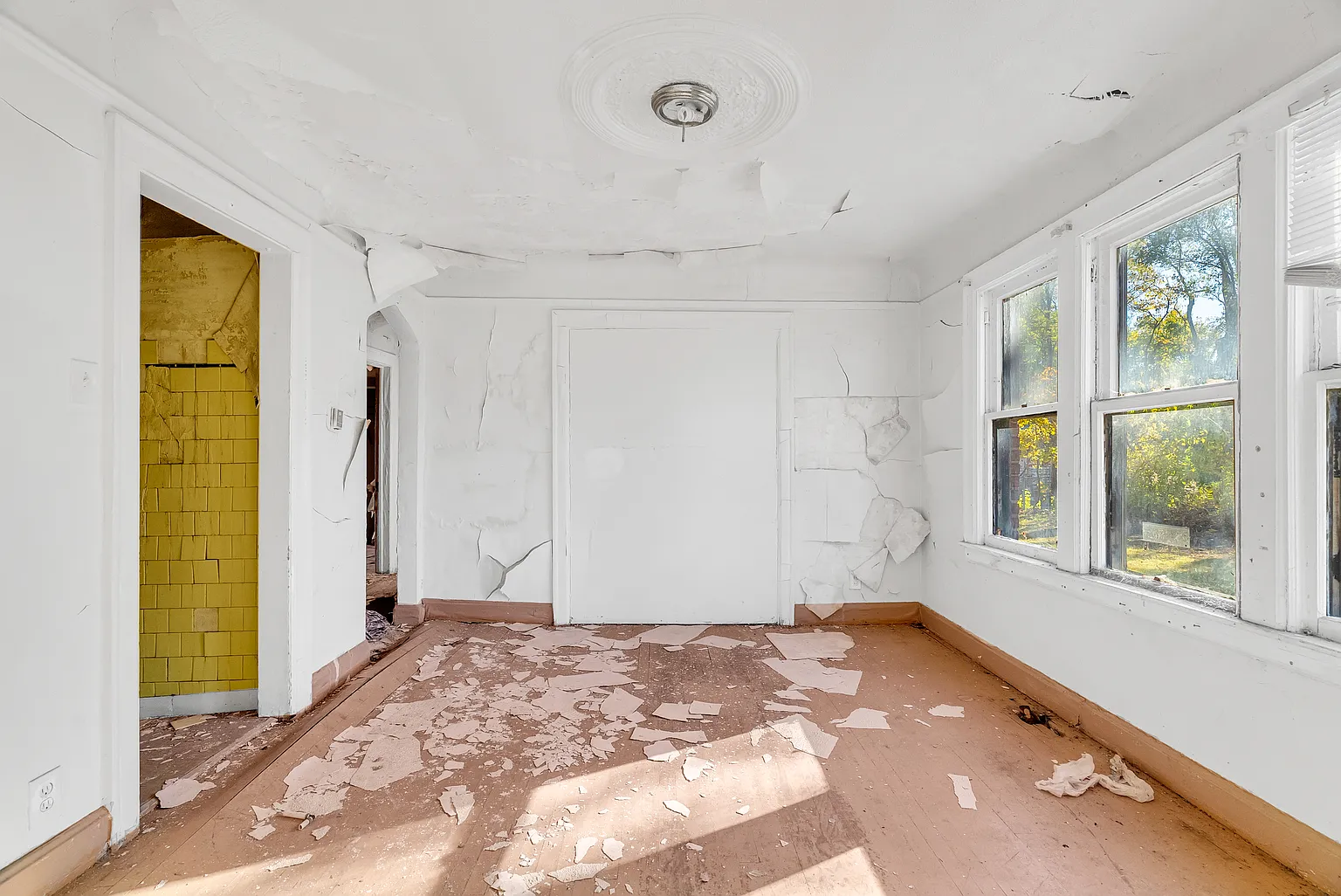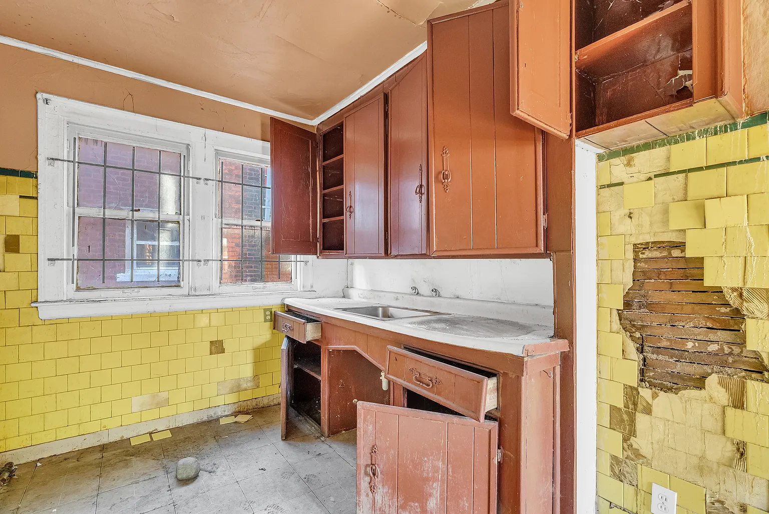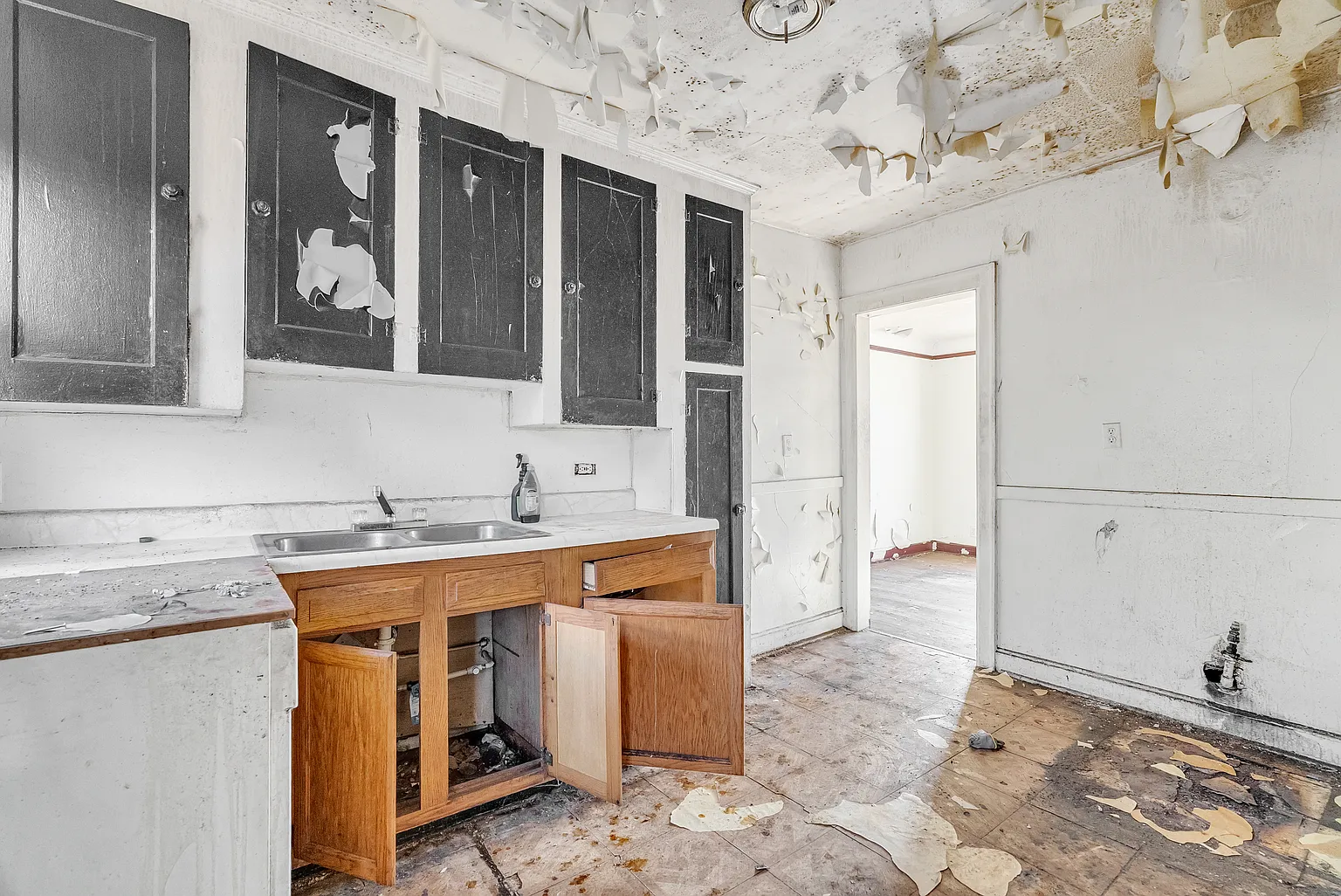 Though the home requires full renovation, its bones reflect the durability and craftsmanship associated with properties from its era. Original features—such as wood framing, interior doorways, and exterior brickwork—provide a strong foundation for modern updates.