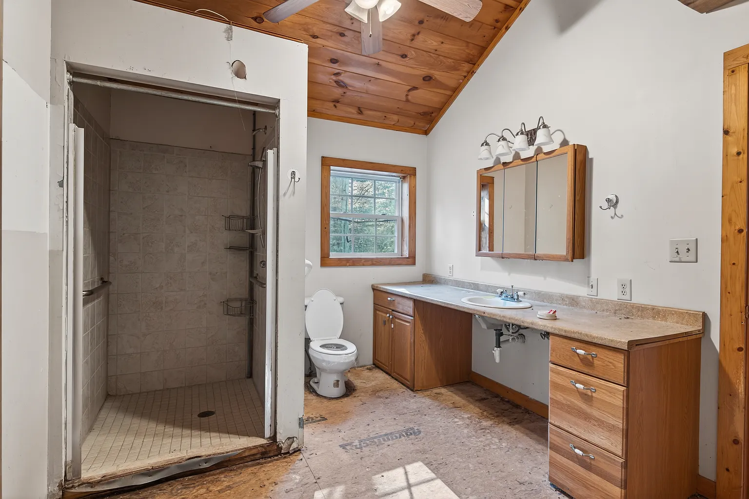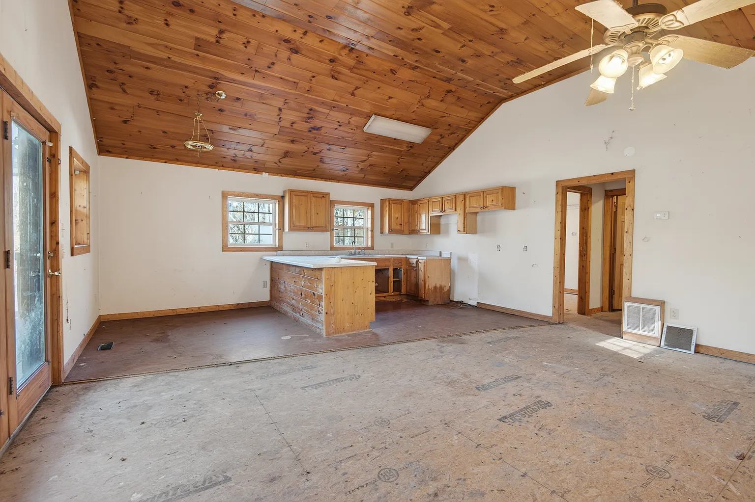 From the moment you step inside, the home welcomes you with its warm, inviting atmosphere. One of its standout features is the vaulted tongue-and-groove ceilings, which bring a rustic, cabin-style feel to the main living space.