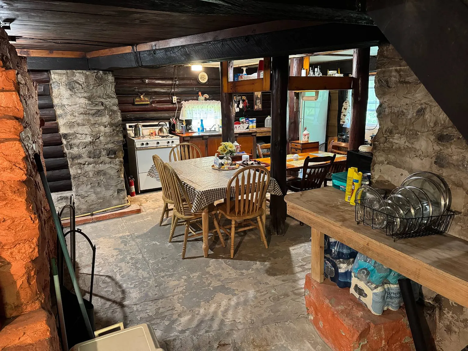 A wood and coal-burning stove anchors the level, providing both heat and a focal point for gathering during colder months. There’s also a utility and storage room, ensuring that essential supplies and equipment are neatly organized.