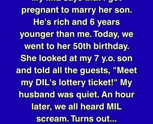 “My MIL says that I got pregnant to marry her son. He’s rich and 6 years younger than me. Today, we went to her 50th birthday. She looked at my 7 y.o. son and told all the guests, ‘Meet my DIL’s lottery ticket!’ My husband was quiet. An hour later, we all heard MIL scream. Turns out…”