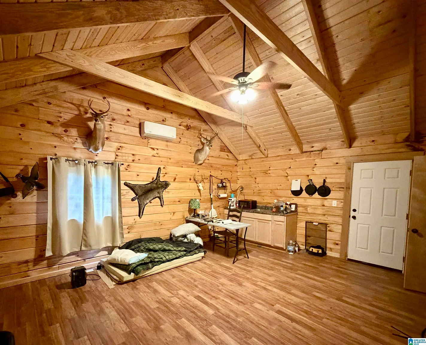At the heart of the property sits a thoughtfully constructed 20×25 hunter’s cabin, built in 2022. Unlike many rustic cabins that require significant upgrades, this one is already equipped with electricity as well as heating and cooling, making it comfortable year-round.