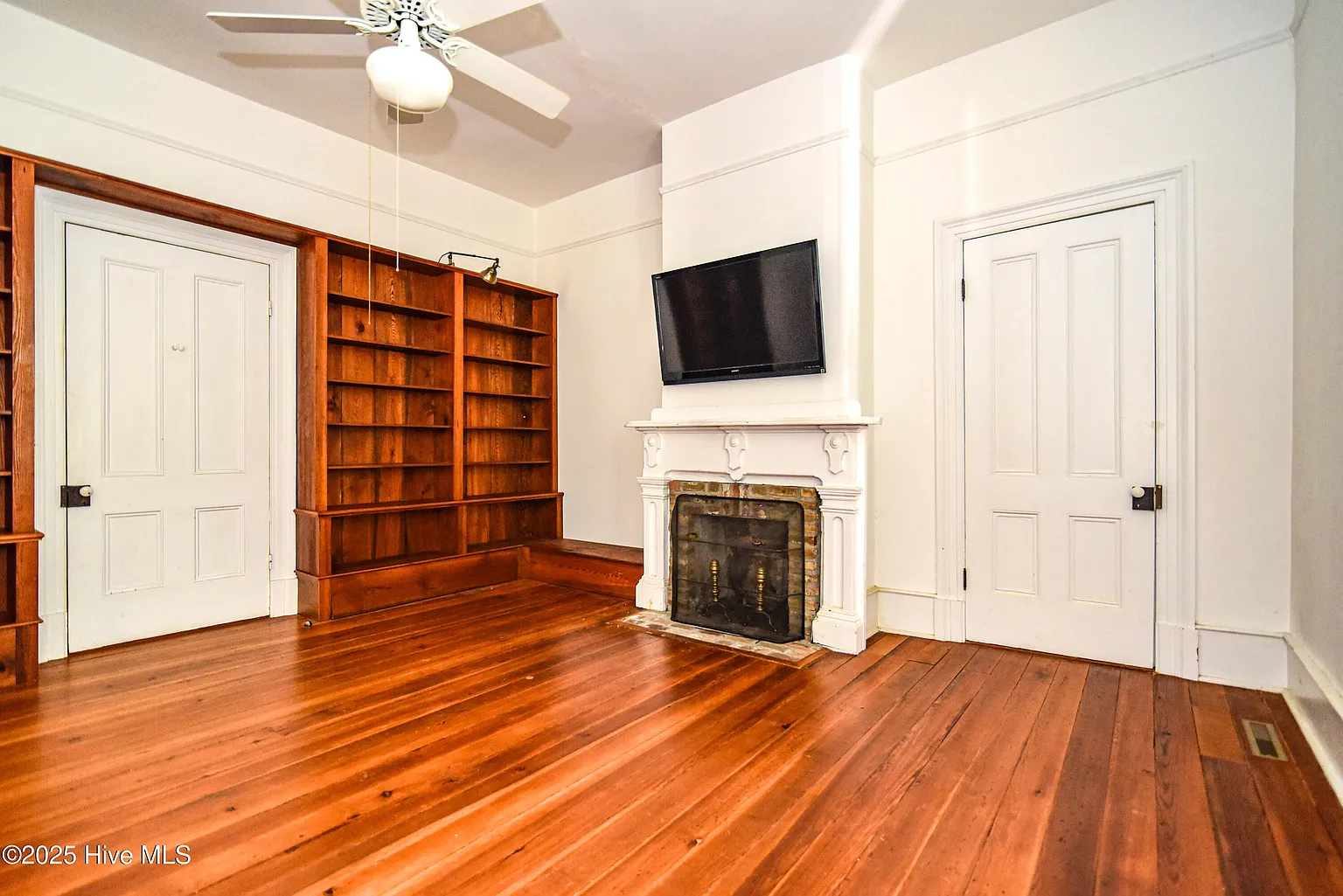 The original hardwood floors run throughout, grounding each space in warmth and authenticity. Multiple marble and slate mantels anchor the rooms, serving as both functional and decorative focal points.
