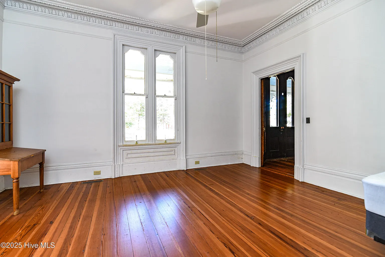 From the moment you step inside, the level of detail is unmistakable. Heavy molded woodwork, plaster crown moldings, and decorative ceiling medallions frame the rooms, while tall arched windows flood the interior with natural light.