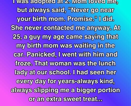 Sitting in the car was a woman I had seen hundreds of times before—the lunch lady from my old school. My breath caught in my throat. For a moment, my mind couldn’t process it. This gentle, familiar woman—the one who smiled at me every single school day—was my birth mother.